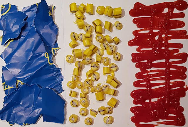 Studenti dostali zadání použít právě tyto tři barvy, aby vytvořili jakýmkoli způsobem (kresba, malba, koláž, fotografie,...) zátiší. Tohle je tedy jejich pocta primárním barvám: